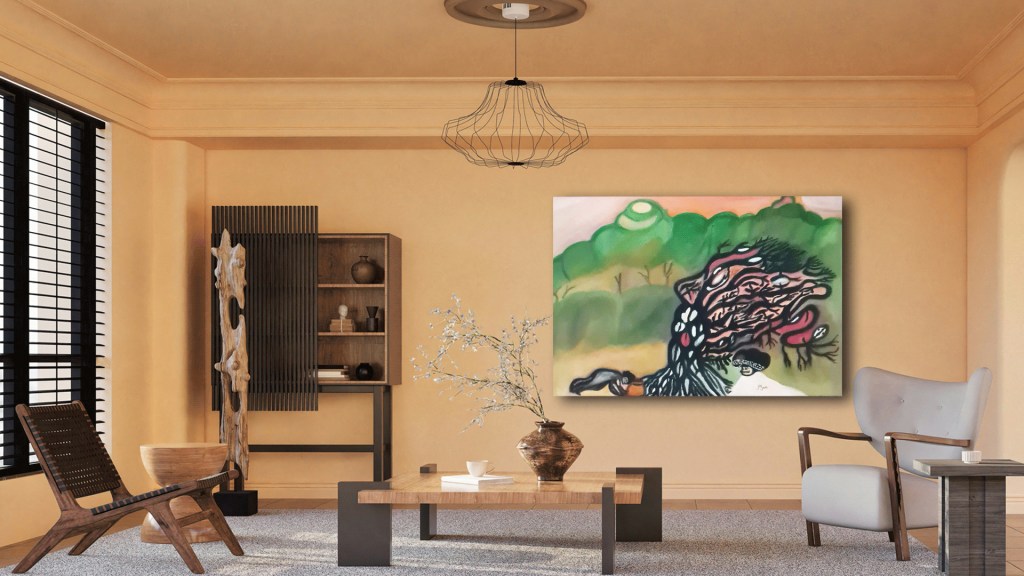 Mountain tree with Khokho | Oil | 81mm x 65mm